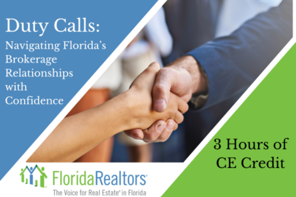 In today's dynamic real estate landscape, mastering brokerage relationships extends far beyond checking regulatory boxes—it's the foundation of a sustainable, respected practice. In this class, you’ll explore practical applications of Florida’s brokerage relationship laws through real-world scenarios you encounter daily. Since the introduction of Chapter 475.278, Florida's brokerage relationship requirements have grown increasingly sophisticated. Through interactive discussions and practical scenarios, you'll master the nuances of different relationship types, clearly understand your obligations under each, and develop strategies to protect both your clients and your practice. Whether you're a veteran agent or newer to real estate, this course will enhance your brokerage relationship expertise and provide actionable tools to better serve your customers and principals while building a thriving, compliant business. Read more